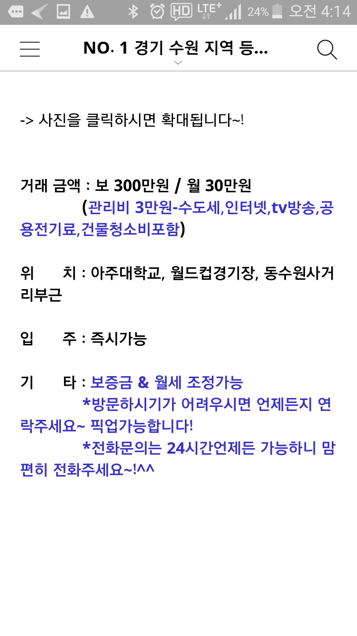 아주대삼거리 월세25 4개월 쓰실 분