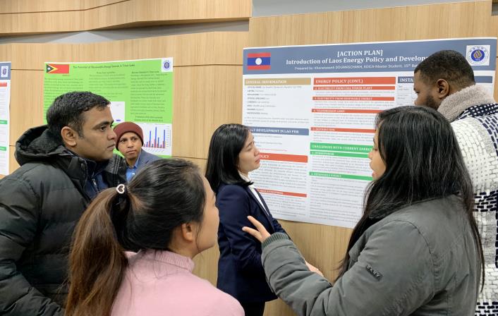 우리 학교 국제대학원이 행사를 열었다. KOICA와 우리 학교 국제대학원이 진행하는 ‘KOICA-아주대 에너지 정책 역량 강화 석사학위 과정’에 재학 중인 학생들이 포스터 발표를 맡았다. 13일 율곡관에서 열린 이번 행사에는 가나, 알제리, 카메룬, 케냐, 탄자니아, 몽골, 미얀마, 에콰도르를 비롯해 27개 나라에서 온 40명의 유학생들이 참여했다. KOICA(한국국제협력단)의 무상 원조 일환으로 마련된 초청 연수 프로그램 석사 학위 과정에 재학 중인 학생들로, 각국에서 공무원으로 재직 중인 인재들이다.학생들은 우리 대학에서 수학한 내용을 자국의 에너지 사업 발전을 위해 어떻게 적용할 수 있을지를 연구, 프리젠테이션 및 포스터 세션 형태로 발표했다. 김병관 국제대학원장(사회학과 교수)은 “각국의 정책 입안자로 성장할 학생 여러분이 우리 대학에서의 수학 경험을 통해 자국의 에너지 정책 수립과 실행을 주도할 수 있기를 바란다”며 “이를 통해 자국의 경제발전에 기여하고, 지구적 협력에 동참할 수 있기를 기대한다”고 말했다.KOICA-아주대 에너지 정책 역량 강화 석사학위 과정에 재학 중인 학생들은 우리 학교 국제대학원에서 ▲에너지 자립 ▲에너지 산업 육성 ▲녹색 성장 ▲기후변화 대응 ▲에너지 교육 등 에너지 정책에 대한 교육을 받았다. 우리 학교 국제대학원에는 국제경영학과와 국제통상학과, NGO학과, 국제개발협력학과, 융합에너지학과 5개의 학과가 운영되고 있다. 세계 38개국에서 온 220여명의 학생들이 재학 중이다.‘KOICA 석사학위 과정(에너지정책)’은 UN SDGs(Sustainable Development Goals) 목표 중 ▲양질의 교육 제공 ▲경제 발전 ▲기후변화 대응 ▲파트너십 구축에의 기여를 목표로 운영 되고 있다.