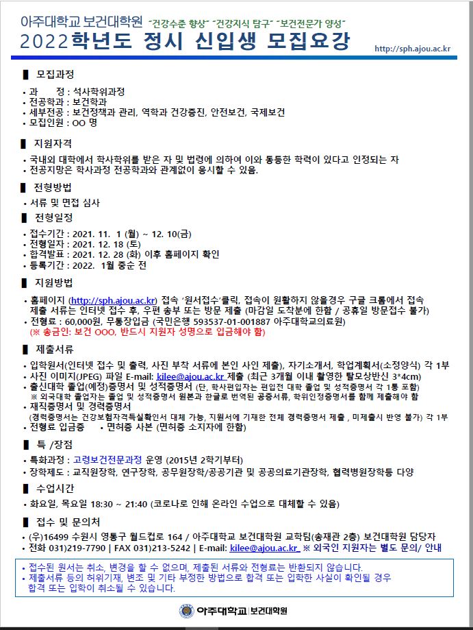 | 14198 | 입학 | 보건대학원교학팀 | 2021-11-02 | ||