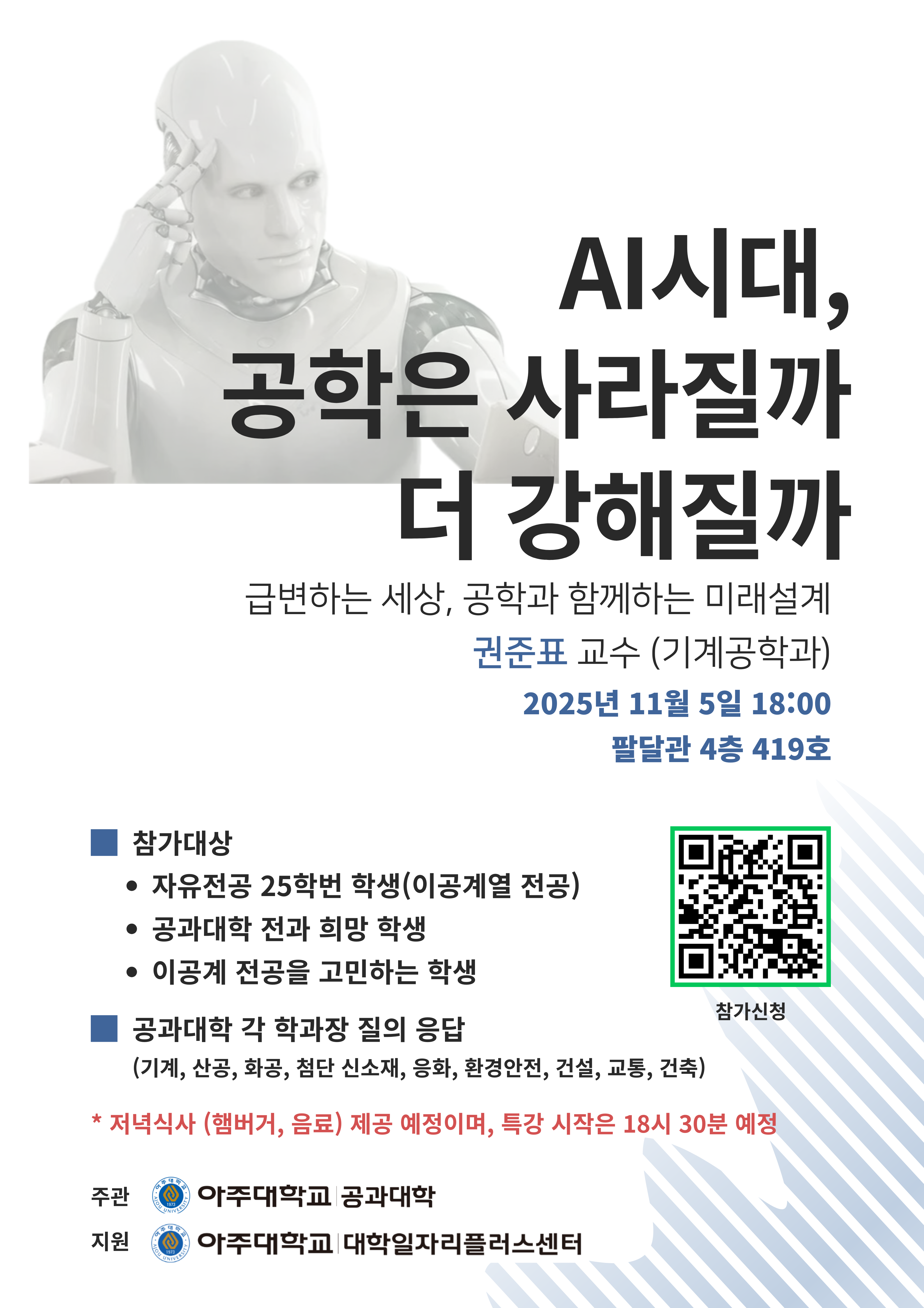 [재공지] 공과대학 학과 설명회 및 AI 관련 특강 안내 (11.05(수))