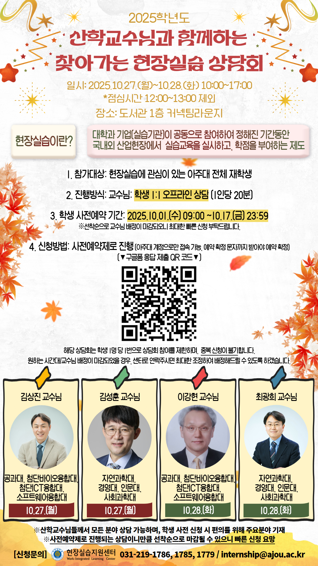 [재공지] [RISE] 2025 산학교수님과 함께하는 "찾아가는 현장실습 상담회" 사전예약 안내 (★~10.17.(금)까지 )