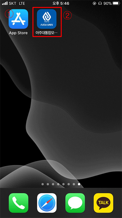 스토어 검색창에 ‘아주대학교 통합 모바일’을 입력하여 앱을 다운로드