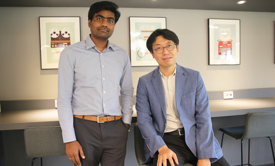 서형탁 교수 연구팀이 수소 연료 생산을 위한 물 분해 광전극을 단일 소재를 이용해 개발하는 데 성공했다. 무공해 방식으로 수소 연료를 생산할 수 있는 저비용 고효율 광전극으로 활용될 수 있을 것으로 보인다. 서형탁 교수(신소재공학과·대학원 에너지시스템학과, 사진 오른쪽)는 단일 소재 기반의 고효율 태양광 물 분해 신소재 광전극을 개발했다고 밝혔다. 관련 내용은 ‘이상적인 도핑과 일함수 조절을 통한 {002}면으로 정렬된 1차원 텅스텐 산화물의 태양광 물 분해 개선 효과(Enhanced solar water splitting of an ideally doped and work function tuned {002} oriented one-dimensional WO3 with nanoscale surface charge mapping insights)’라는 논문으로 촉매 분야 국제 학술지 <어플라이드 카탈리시스 B: 인바이런멘탈’(Applied Catalysis B: Environmental), IF=16.683> 5월6일자 온라인판에 게재됐다. 우리 학교 칼라누르 샨카라(Shankara Kalanur) 교수(신소재공학과, 사진 왼쪽)가 제1저자로 함께 참여했다.수소는 연료로 사용된 후 물이 배출되는 대표적인 청정 연료원으로, 최근 차세대 에너지 연료원으로 주목받으며 산업 전반에서 활용 영역을 확장하고 있다. 연료로서의 수소를 생산하기 위해서는 화석 연료를 개질(reforming)하는 방식이 주로 사용되고 있는데, 이 과정에서 수소 생산 중량의 9배가 넘는 이산화탄소(CO2)도 같이 배출된다. 때문에 대표적 온실가스인 이산화탄소 같은 공해 물질의 배출을 줄이기 위해 전기나 태양광을 이용하는 광·전기 화학적 물 분해 기술에 대한 연구가 최근 활발히 이루어지고 있다. 태양광이 반도체 광전극에 입사할 때 생성된 전하를 이용하여 물을 분해하는 방식으로, 이 방법은 이산화탄소 배출이 없는 청정 수소 생산 방식이다. 그러나 기존 화석연료 개질 방식에 비해 매우 낮은 생산 효율이 그동안 한계점으로 인식되어 왔다. 이러한 낮은 생산 효율을 극복하기 위해서는 태양광 물 분해 시스템에서 가장 핵심적인 역할을 하는 광전극의 광 반응 특성을 향상 시키고, 장기 반응 내구성을 확보하는 것이 관건이다. 최근 단일 소재 광전극으로는 이러한 기술적 향상을 이루는 데 한계가 있는 것으로 판명되어, 여러 소재를 적층하여 광전극을 형성하는 ‘탠덤’ 구조에 대한 연구가 많이 이루어져 왔다. 그러나 탠덤 구조를 이용하는 경우 공정이 복잡해져 광전극의 특성 재현성이 현저히 낮아지고 이종 소재 간 화학적 불안정성을 보이기도 하는 등 여러 문제가 발생해 왔다. 서형탁 교수팀은 기존에 널리 연구되어 왔으나 효율 향상 한계에 봉착했던 텅스텐 산화물(WO3) 광전극에 주목했다. 서 교수팀은 다른 소재를 추가한 이종 적층 구조를 쓰지 않고 단일 소재에 소량(1.14%)의 이트리움(Y)을 ‘도핑’할 경우 1차원 텅스텐 산화물 나노로드의 결정 방향이 광화학적으로 활성이 높은 {002}면에 대하여 정렬된다는 점을 발견해 냈다. 연구진은 최적 도핑 농도 및 공정 확보를 위해 수십 가지 경우의 불순물 농도를 검증, 최적 조건을 찾아냈다. 연구팀은 최적 조건으로 이트리움(Y)이 도핑된 텅스텐 산화물(WO3)에서 광전류가 200% 가량 대폭 향상되며, 촉매에 흡수된 빛에 의한 광전류의 수소 전환 효율은 95%에 이른다는 점을 확인했다. 그 밖에도 극소량의 도핑으로도 저항 감소, 전자구조 변화, 표면일함수 변화 등 다양한 물리·화학적 특성이 달라질 수 있음을 확인했다. 서형탁 교수는 “저가의 텅스텐 산화물에 극소량의 불순물 도핑을 통해 고효율 단일소재 기반의 나노구조 광전극 제조에 성공한 사례”라며 “이를 통해 최고 수준의 전환 효율로 수소를 생산할 수 있음을 확인했고, 앞으로 안정성을 더욱 개선해 실용화를 목표로 연구를 이어 가겠다”고 말했다. 이번 연구는 과학기술정보통신부·한국연구재단 주관 기초연구지원사업(기본)의 지원과 해외우수신진인력지원사업의 지원으로 수행됐다.