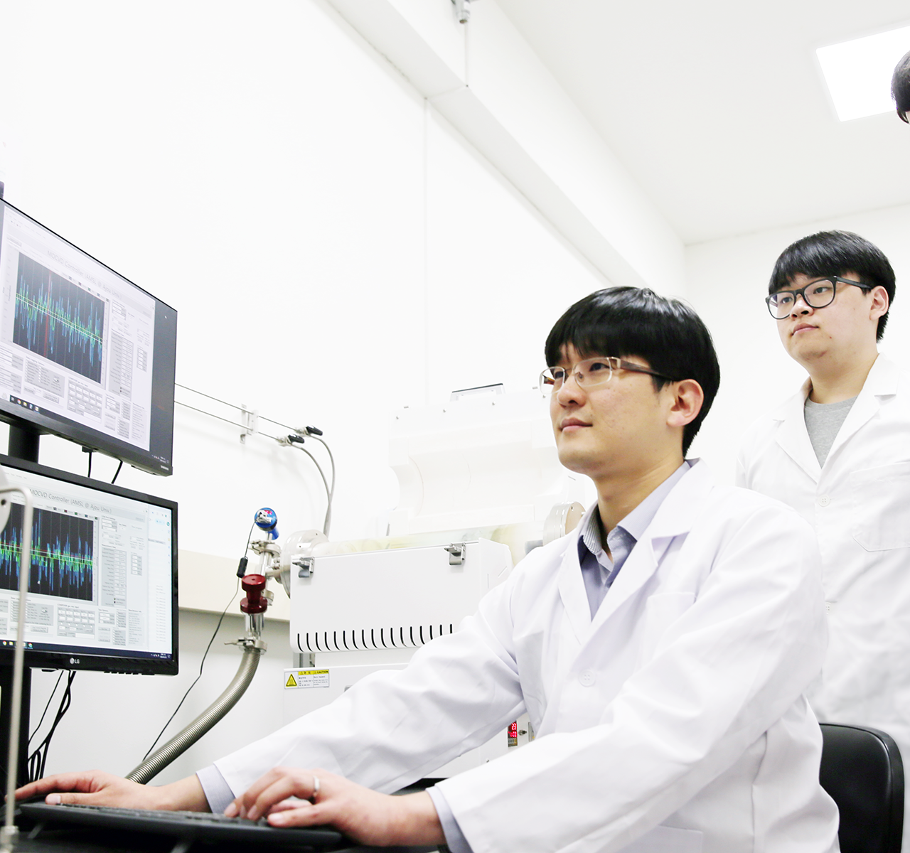 아주대∙UNIST 연구팀이 이황화텅스텐(WS₂) 나노닷(Nanodot)을 이용해 반도체 내부의 준입자인 ‘엑시톤’ 간의 상호작용을 강화할 수 있는 새로운 방법을 개발했다. 엑시톤의 특성을 잘 활용하면 기존에 없던 새로운 형태의 반도체 소자를 만들 수 있어 최근 활발히 연구가 이루어지고 있다.이번 연구 결과는 ‘WS₂ 나노점을 이용한 엑시톤 상호작용 증가 연구(Laterally Confined Monolayer WS₂ Nanodot for Enhanced Excitonic Interaction)’라는 제목으로 나노 분야 글로벌 저널 <나노 레터스(Nano Letters)> 10월 온라인판에 게재됐다.해당 연구는 아주대학교 물리학과와 울산과학기술원(UNIST) 연구진의 공동연구로 수행됐다. 아주대 에너지시스템학과 임승재 연구원과 UNIST 신소재공학과 여정인 연구원이 공동 제1저자로 참여했고, 아주대 물리학과 이재웅 교수와 UNIST 신소재공학과 서준기 교수가 공동 교신저자로 연구를 이끌었다.‘엑시톤’이란 반도체 내부에서 전자와 정공(hole)이 결합해 형성되는 준입자(quasiparticle)로, 반도체의 전기적·광학적 특성을 결정하는 핵심 요소다. 이러한 준입자들이 나노미터 수준의 좁은 공간에 갇혀 있을 때 나타나는 양자 상태의 변화를 ‘양자 구속효과’라고 한다. 특히 두께가 1nm 이하인 2차원 반도체에서는 엑시톤이 이차원 평면 상에 갇혀 있기 때문에 양자 구속효과로 인한 엑시톤 간 상호작용이 매우 강하게 나타난다. 이에 준입자가 여러 개 결합한 다체 준입자(many-body quasiparticle) 연구가 활발히 진행되고 있다. 슈퍼 컴퓨터 보다 월등히 빠른 양자 컴퓨터나 해킹이 불가능한 양자 암호 통신 등 새로운 양자 기술 개발의 토대를 마련하기 위해서다. 공동 연구팀은 빛이나 전자빔을 사용하는 기존 나노점 합성법과 달리, ‘다공성 박막 기반 합성법’을 개발해 높은 결정성을 가진 이황화텅스텐(WS₂) 이차원 나노점 제작에 성공했다. 새로 개발된 나노점은 두께가 1nm 이하에 크기는 수십 nm로, 기존 이차원 소재가 갖고 있는 수직 방향의 양자 구속효과 뿐만 아니라, 수평 방향의 움직임을 제한해 추가적인 양자 구속효과를 유도함으로써 엑시톤 밀도를 크게 증가시킬 수 있었다.그 결과 연구팀은 기존 이차원 시료에서는 관측이 매우 어려웠던 엑시톤 2개가 결합된 바이엑시톤 상태를 관측하는 데 성공했다. 또한 이황화텅스텐(WS₂) 나노점 구조에서 발생하는 빛의 밸리 분극(valley polarization) 특성도 향상되어, 밸리트로닉스(valleytronics) 기반 양자정보 소자 개발 가능성을 제시했다.이재웅 아주대 교수는 “이번 연구는 ‘엑시톤’의 특성을 제어하기 위해 새로운 방향을 제시한 것으로, 양자정보 소자의 설계에 활용될 수 있다”라며 “앞으로 양자광학 연구와 차세대 반도체 소자 개발 등에 기여할 수 있을 것”이라고 말했다.이번 연구는 교육부의 G-LAMP 사업, 과학기술정보통신부의 기초연구실지원사업, 나노·소재기술개발사업, 양자정보 인적기반 조성 사업의 지원을 받아 수행됐다. 이차원 WS2 나노닷의 모식도 및 엑시톤에 의한 발광 신호를 보여주는 이미지* 위 사진 - 이재웅 교수팀의 연구 모습