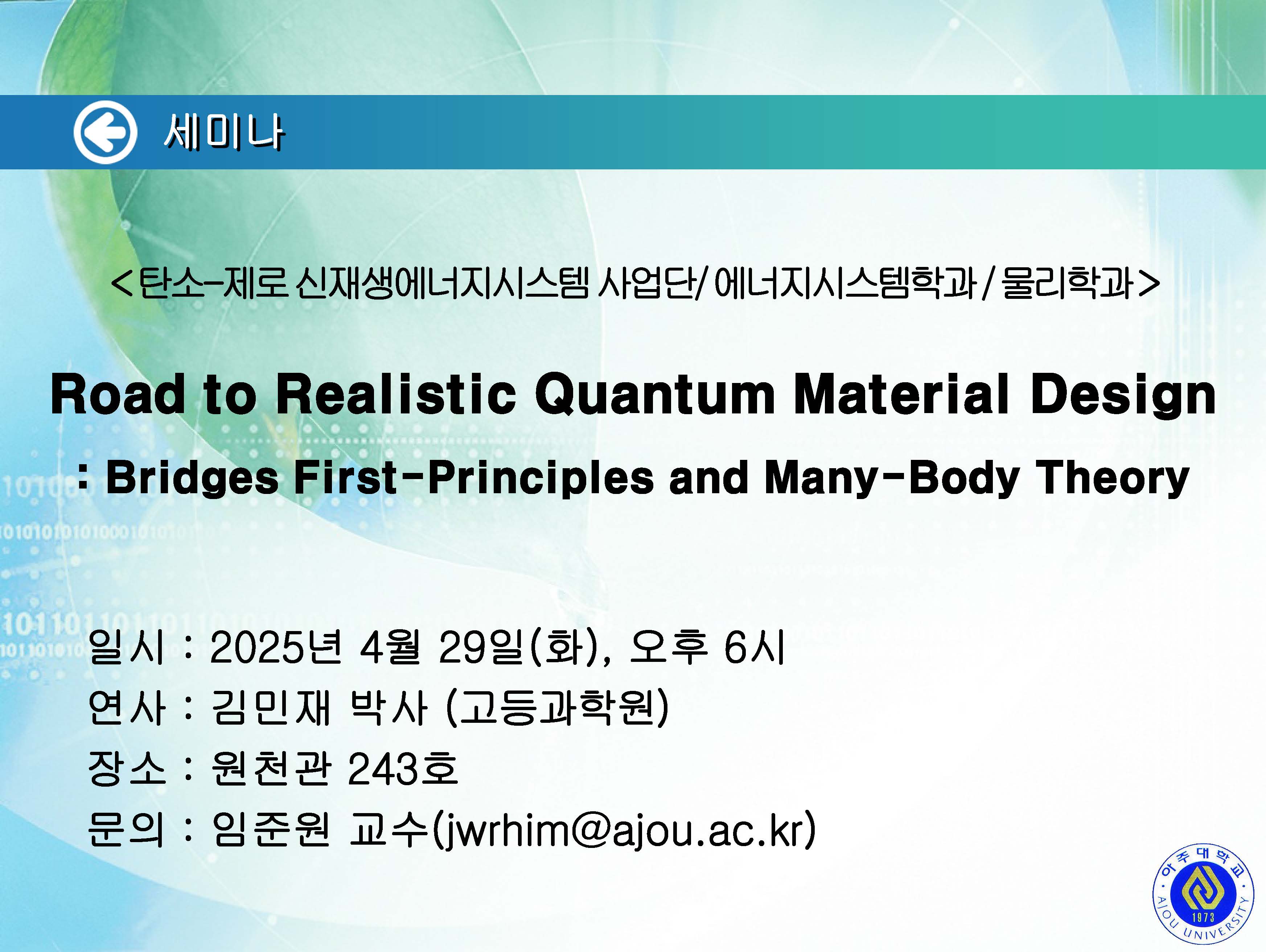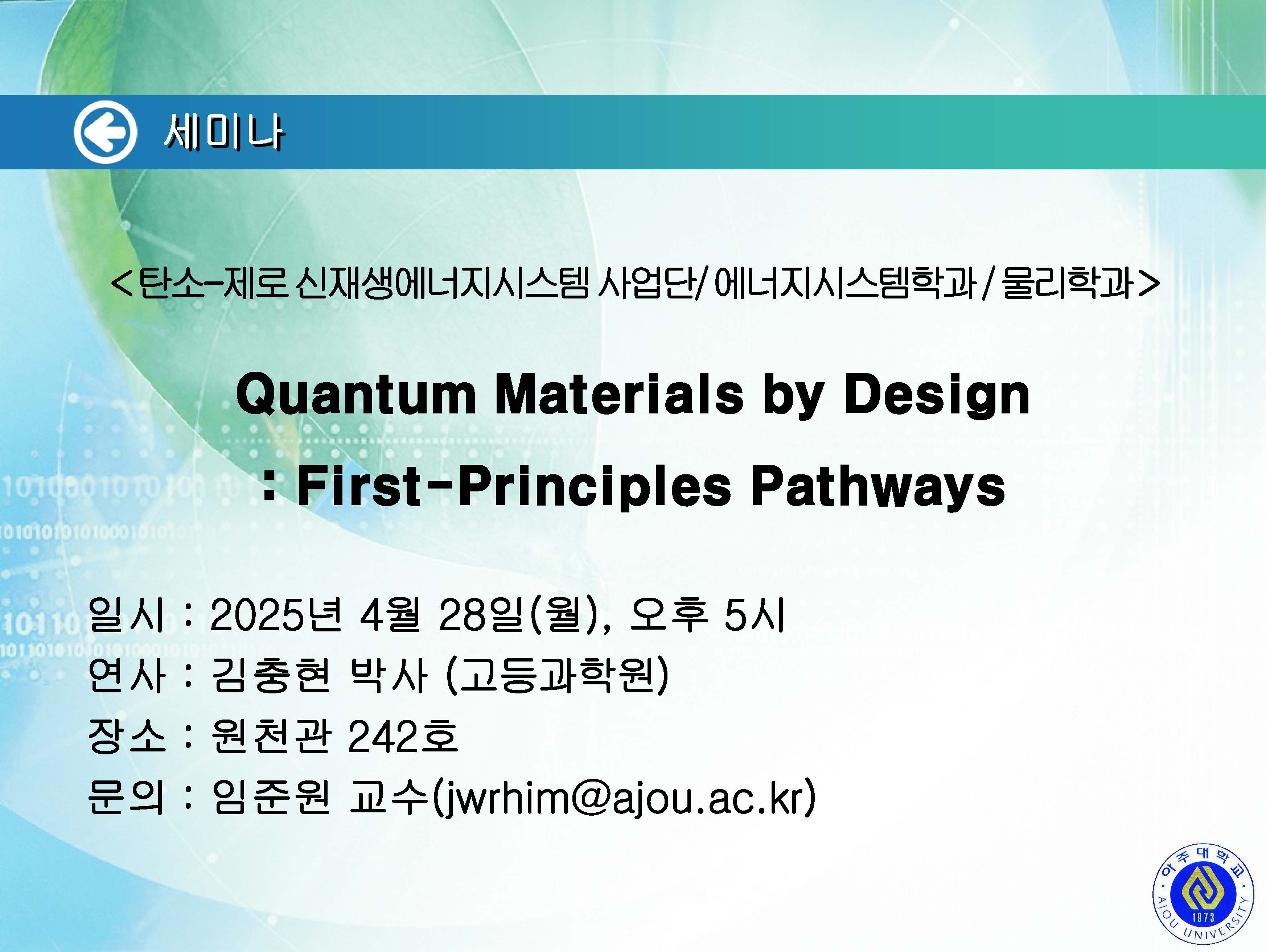 | 1747 | 세미나/포럼 | 교내 | 2025-04-25 | ||
