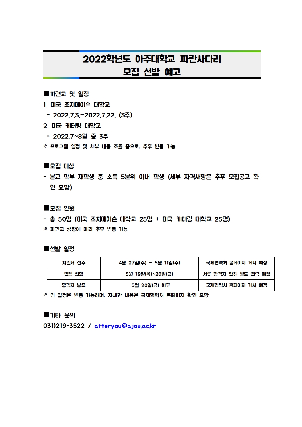 | 726 | Outgoing | 국제교류팀 | 2022-04-19 |
